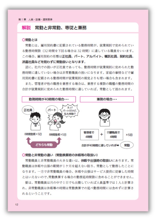 複雑で分かりづらい人員・利用者のカウントや、「常勤」、「兼務」等の考え方について、文章だけでなくイラストを用いて分かりやすく解説!
