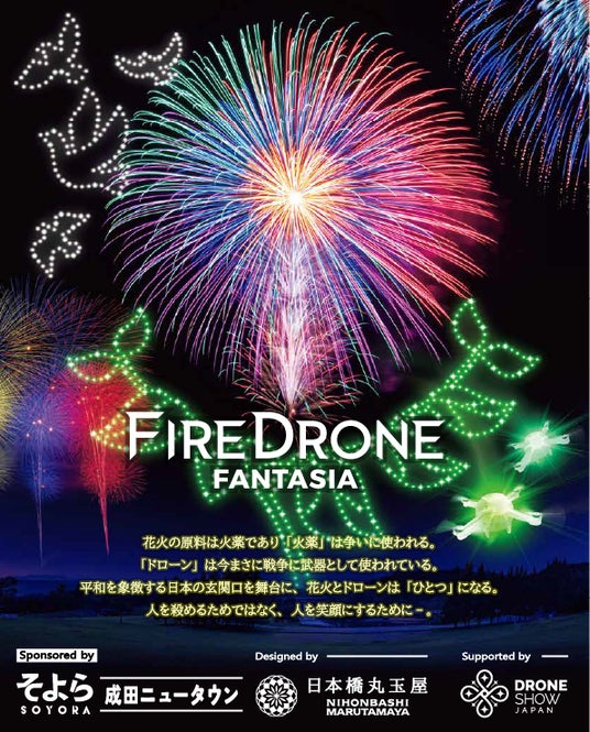 株式会社日本橋丸玉屋(本社:東京都中央区日本橋、代表取締役:小勝 敏克)は、2024年11月2日に成田ニュータウンスポーツ広場(千葉県)にて開催される『NARITA花火大会in印旛沼』にて、日本初となる花火×ドローン×音楽×花火タワーを完全シンクロさせた花火大会を企画・演出・制作します。