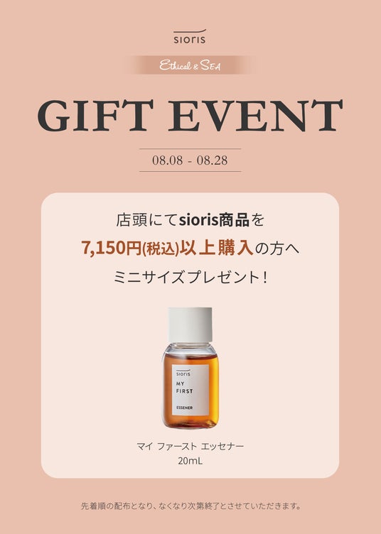 プレゼントの条件:Ethical&SEA 店頭にてsioris 商品を 7,150円(税込)以上購入