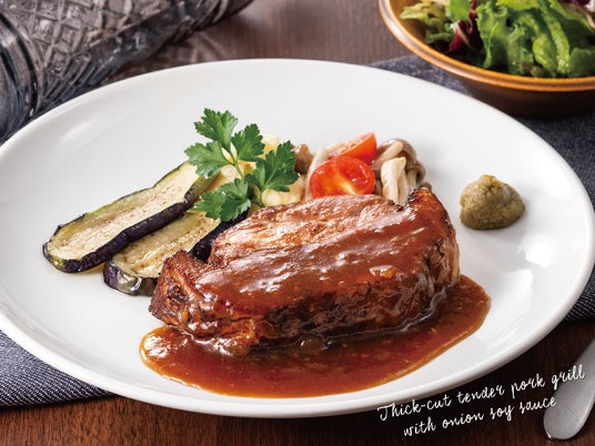 厚切りやわらかポークグリルたっぷり玉ねぎ醤油ソース