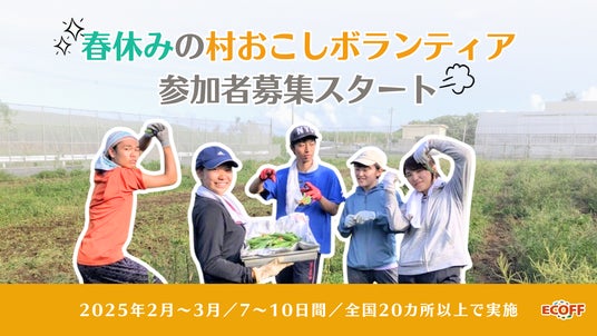 「地域活性化を、みんなのものに。」をテーマに、全国各地の離島や農山漁村で学生向けの住み込み型ボランティア活動を展開している村おこしNPO法人ECOFF(本部:東京都文京区 代表:宮坂大智)は、2025年2月から3月に実施される「村おこしボランティア」の参加者募集を開始します。