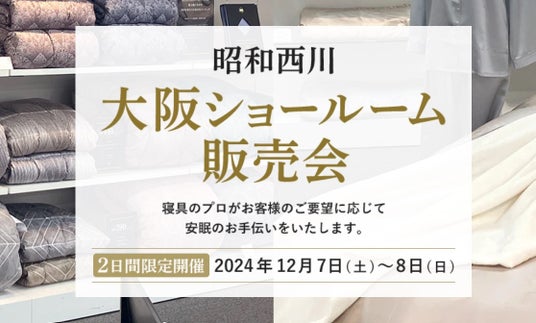 【昭和西川】大阪初のショールーム販売会開催決定!12月7日(土)・8日(日)の2日間限定で、高品質な寝具全商品をお試しいただけます