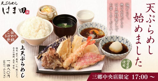 【昼は天丼・夜は定食】揚げたての天ぷらを堪能する「天ぷらめしはま田」はじめます。