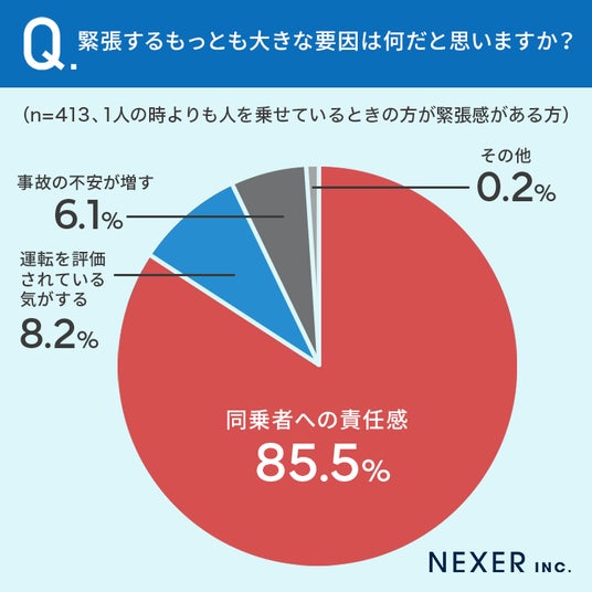 【普段車を運転する500人に調査】82.6%が、運転時に人を乗せていると「緊張感がある」