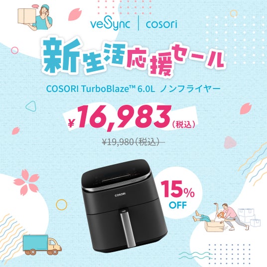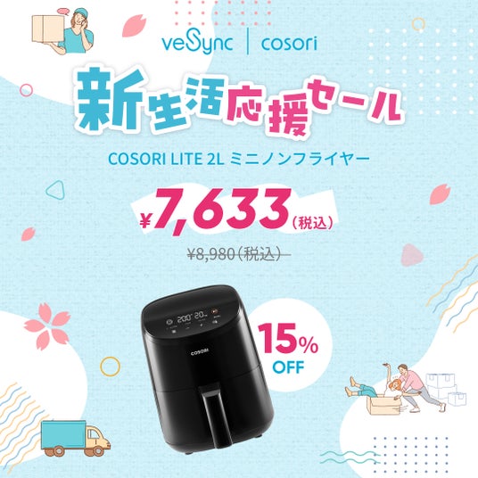 新生活を迎える皆様を応援するため、VeSyncは暮らしを豊かにする人気製品を厳選し、特別価格でご提供します。2024年にSNSで話題となったCOSORIノンフライヤーや、花粉対策に最適なLevoit空気清浄機が最大15%OFFでお求めいただけます。さらに、指定製品をセットで購入すると最大20%OFFと大変お得です。この機会にぜひ新生活にぴったりのアイテムをご検討ください。
