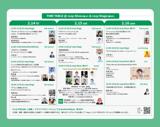 本イベントでは、AnotherADdressのコンセプトである “FASHION NEW LIFE”をテーマにファッションの愉しさやサステナブルの融合となる循環型ビジネスモデルを体感できる展示・ワークショップ・トークショーはもちろん、今年初開催のファッションコンテスト『roop Award 2024-2025』の最終審査・授賞式も開催いたします。国内外のクリエイターや学生、企業やコンシューマー等、どなたでも見学が可能です。