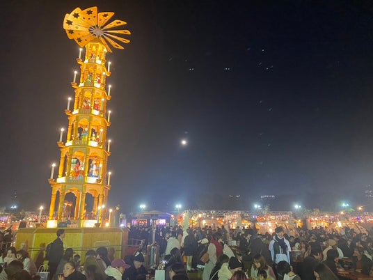 ヨーロッパ各地で愛され続ける「クリスマスマーケット」の伝統を継承し、ドイツ・ドレスデンをモデルに2015年からスタート。今年で10周年を迎えるこの特別な年、グリム童話やヨーロッパの童話をテーマにアートの要素をふんだんに取り入れた「クリスマスピラミッド」が会場を幻想的に彩ります。