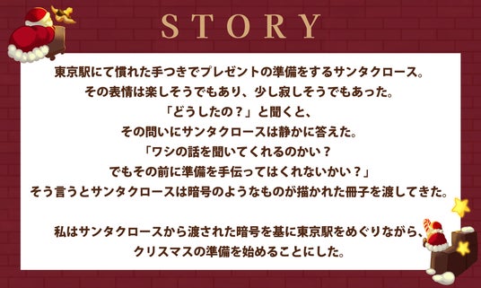 私はサンタクロースから渡された暗号を基に東京駅をめぐりながら、クリスマスの準備を始めることにした。