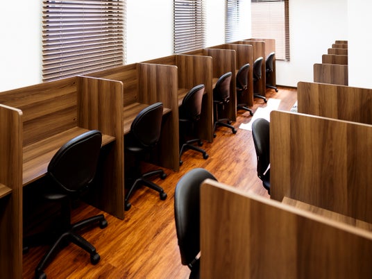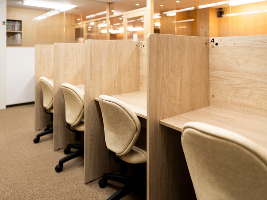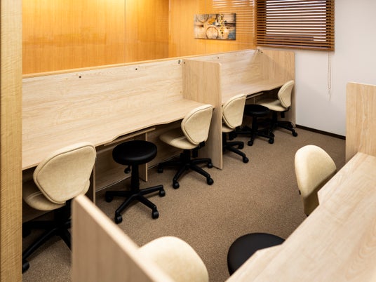 パーティションで個別に仕切られた自習室は、落ち着いた雰囲気で学習に集中できる環境です。授業がない日でも自由に利用することができます。