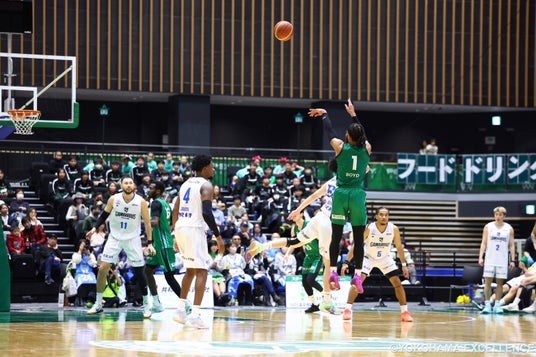 後半はそこからさらに守備に磨きがかかり、「#1 トレイ・ボイドIII」の3Pシュートなどで着実に得点を積み重ねる中で徳島に連続得点は許さずこの日の各Qでは最少となる10失点に抑え、56-36で3Qを終えます。