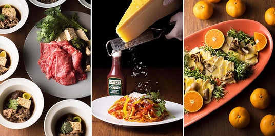 「コールドチキンと茸を小田原産みかんのフレーバーで」は、神奈川県内で収穫量1位を誇る“小田原のみかん”で作ったドレッシングを、チキンにかけてさっぱりとお召し上がりいただく冷製料理。みかんの爽やかな香り、甘味と酸味のほどよいバランスが絶妙です。また、「パルミジャーノ・レッジャーノで仕上げた 清水屋のケチャップのナポリタン」や、上質でやわらかな肉質が特徴の神奈川生まれのブランド牛肉を用いたスペシャルディッシュ「やまゆり牛を牛鍋仕立てに」(お1人さまにつき1皿・大人の方・土日祝限定)など、横浜が「発祥の地」と言われるメニューもご用意いたします。