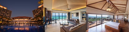 左から琉球ホテル&リゾート名城ビーチ/カフーリゾートフチャクコンド・ホテル/カヌチャベイホテル&ヴィラズなと様々なハイクラスホテルのスイートルームをご案内