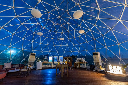 1棟貸切のドームテントには、 専用のお食事スペース・プライベートガーデン ・ファイヤーピットを完備。施設中央にはフリーバーが楽しめる クリアドームもお楽しみいただけます。