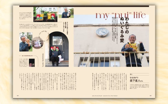 ぬいぐるみをこよなく愛する”ぬいLover”4名にインタビュー。森下直人さん(ななまがり)、福富優樹さん(Homecomings)、篭原怜那さん(エディター)、中島真美さん(フォトグラファー)が、ぬいとの出会いのエピソードや過ごし方、受けた影響など、愛情たっぷりのトークを繰り広げてくださっています。