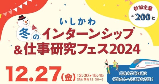 県内企業への就職を検討する学生向けに、2024年12月27日(金)に県産業展示館(金沢市)にて「いしかわ冬のインターンシップ&仕事研究フェス2024」を開催いたします。