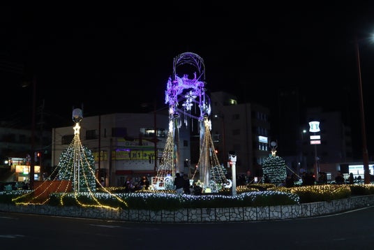 小郡市賑わい創出イルミネーション10周年を迎えたイルミネーション。駅前をにぎやかに彩っています。鴨フェアの飲食店が集中しているエリアです。