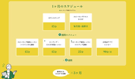 - 週2回45分間と週1回25分のオンラインレッスンを通じて、実践的な英語力を効率的に習得可能。