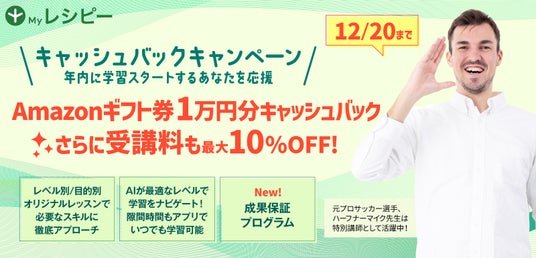 【英語コーチング成果保証プラン】が大人気のレシピーがキャッシュバックキャンペーンを開催中 – 株式会社ポリグロッツ- 2024年12月16日(月)~12月20日(金)