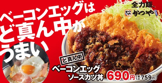アークランドサービスホールディングス株式会社の子会社、とんかつ専門店「かつや」を展開している株式会社かつや(本社:東京都千代田区/代表:大内 勇一)は、国内「かつや」にて「ど真ん中ベーコンエッグソースカツ丼」を2024年11月22日(金)より期間限定で販売を開始いたします。