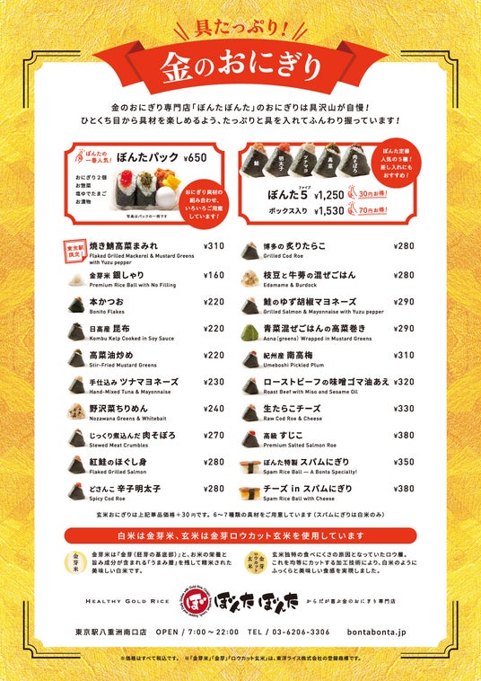 【金のおにぎり専門店 ぼんたぼんた】 東京駅八重洲南口に新規オープン!