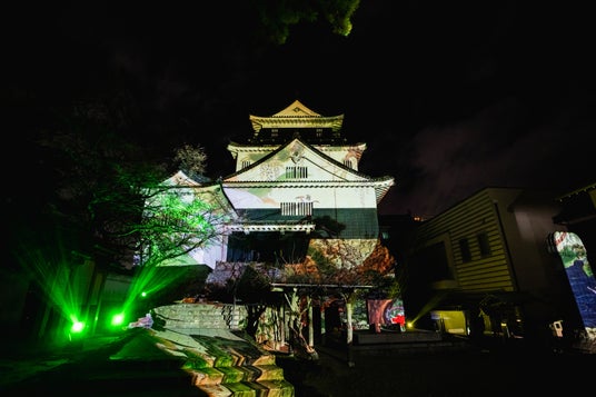 徳川家康生誕の地・岡崎のシンボルである岡崎城天守閣と、岡崎城公園の表玄関である大手門に投影。「岡崎デジタルアートナイトフェスティバル」のプログラムとして実施。公式記録写真を公開。