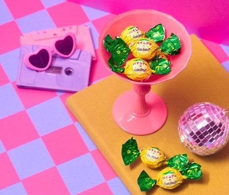 「サクマ製菓」の “ いちごみるく ” がそのままチョコレートに! あのキャンディグリッターのシャリシャリ感とトリュフの口どけが新鮮な組合せ。