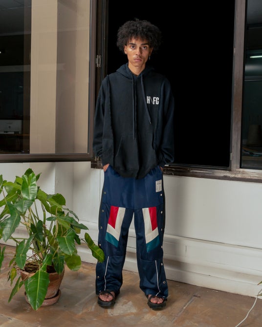 BUZIGAHILL(ブジガヒル)/「RETURN TO SENDER」のリメイクウェア パーカー 58,300円、パンツ 60,500円
