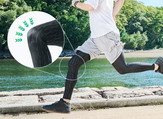 太ももから足首にかけてプリントされたサポートラインでひざを安定させ、ふくらはぎの程よい圧迫により筋肉のブレを低減させることで、脚全体のサポートを実現しています。