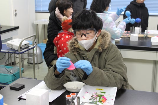 講座では、「機械系」「電気系」「情報系」「化学系」の4つのコースに分かれてものづくりを体験しました。