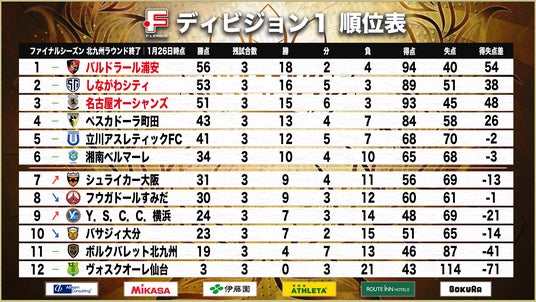 ■現在の順位表|1月26日時点※ファイナルシーズン 北九州ラウンド終了