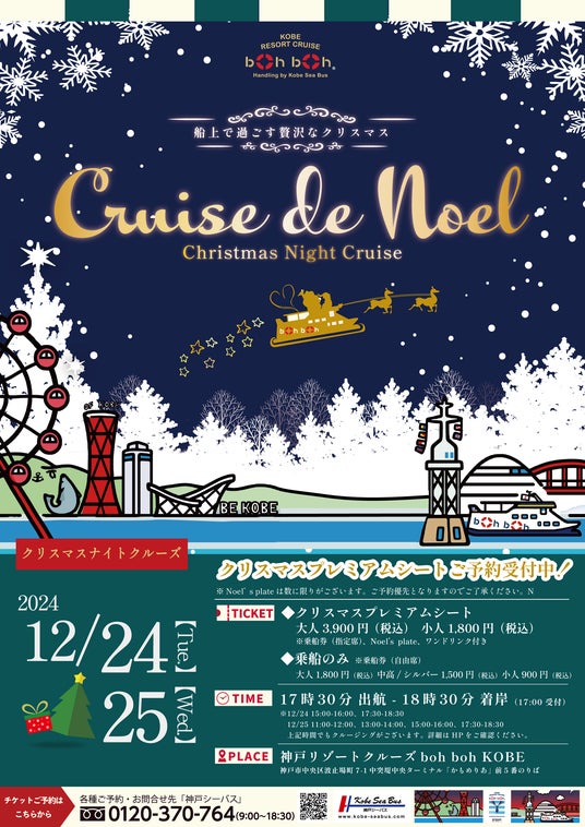 【12月24日・25日限定】船上でクリスマスクルージング!今年のboh boh KOBE「Cruise de Noel」は12月24日(火)~25日(水)の二日間で開催!