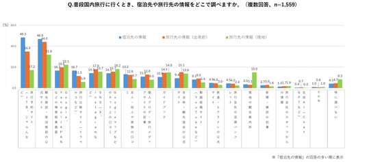 - 国内旅行の情報収集は「旅行予約サイト・施設の公式サイト」参考派が多数