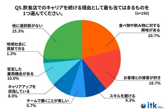 調査結果5. 飲食店でのキャリアを続ける理由として、最も当てはまるものを1つ選んでください。