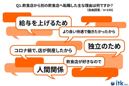 https://i-t-k.co.jp/ 業界最大級の飲食店求人を誇るitkがおくる、飲食店から飲食店への転職経験がある人150 名に聞いた飲食業界での転職とキャリア形成に関するアンケート調査。