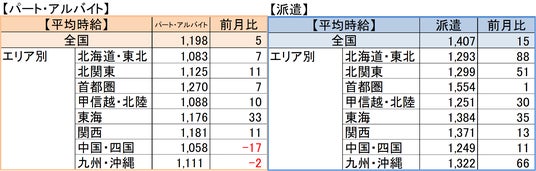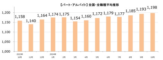 【パート・アルバイト】全国・全職種平均時給は1,198円。前月比+5円。前年同月比+40円。