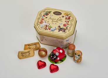 826年創業のカファレルは、過去イタリア王族・貴族に愛されていた、イタリアを代表する老舗チョコレートブランド。「アミーチ・デッラ・フォレスタ」は、ジャンドゥーヤをはじめ、ヘーゼルナッツやきのこ型のホイルチョコなど8粒を詰め合わせたアソート缶。森に迷い込んだネコと動物たちが描かれたかわいいデザインも魅力です。