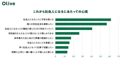 25年卒の学生へこれから社会人になるにあたっての心境を聞いたところ、「社会人になることに不安を感じる(61.5%)」、「残りの学生生活を満喫したい(47.5%)」、「社会人になることが億劫と感じる(まだ学生でいたい)(34.0%)」など、残り少ない学生期間を名残惜しみつつ、有意義な時間を過ごしたいと感じているようでした。