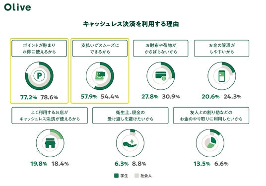 Oliveのサービス開始以降、新規で口座開設されたお客さまの約半数が20代以下の方となっております。ポイント還元率の高さや、スマホ1つで決済、支出の管理ができる利便性から選ばれています。
