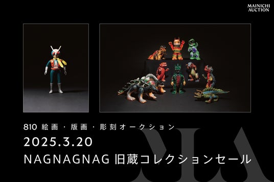 本オークションでは、毎日オークションとしては初の試みとなる、ソフビ、おもちゃに焦点を当てた特集「NAGNAGNAG旧蔵コレクションセール」を開催。ソフビアーティストとして名高いNAGNAGNAG氏のコレクションから、ソフビ、プラモデル、玩具や書籍など多種多様な作品約300点をご紹介します。