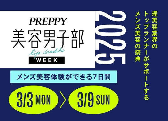 【3/3-3/9】理美容業界のトップランナーからメンズ美容を学ぶ 第2回目「PREPPY美容男子部WEEK 2025」が開催決定!
