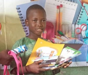 ベナンのスラムで暮らす母子家庭の子どもたちに小学校へ行くためのキットを配布