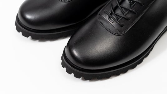 足元にボリュームが出ることで、スタイルアップ効果も期待。革靴でありながら登山靴のような雰囲気のコントラストが、さらにファッションへの自由度を上げてくれます。
