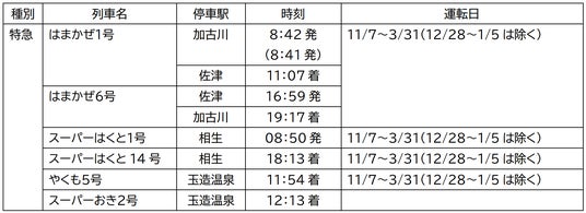・冬の味覚“かに”を満喫いただくため、ご旅行に便利な臨時列車を運転いたします。また、一部の定期列車では臨時停車いたします。