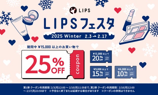 株式会社AppBrew(本社所在地:東京都文京区、代表取締役社長:松田崇)が運営する『LIPSショッピング(https://lips-shopping.com)』では、2025年2月3日(月)12:00より「LIPSフェスタ 2025 Winter」を開催します。