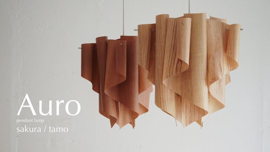 シェードには国産のサクラ材とタモ材を使用しました。美しい木目のシェードを透した光は、やわらかさとオレンジの色味を増し、空間にやすらぎを与えます。天然木を極薄にスライスし、特殊な下地加工をすることで、薄く軽やかなカーブを実現しています。