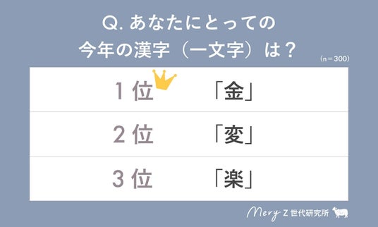 Z世代の男女300名を対象に「あなたにとっての今年の漢字」についてアンケート調査を実施。