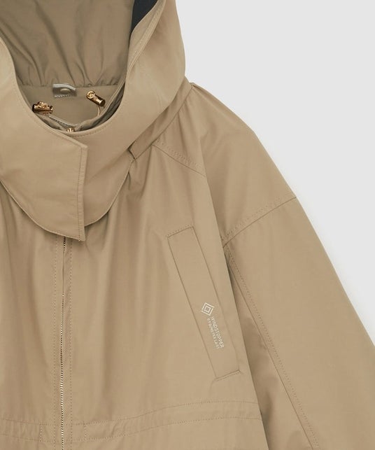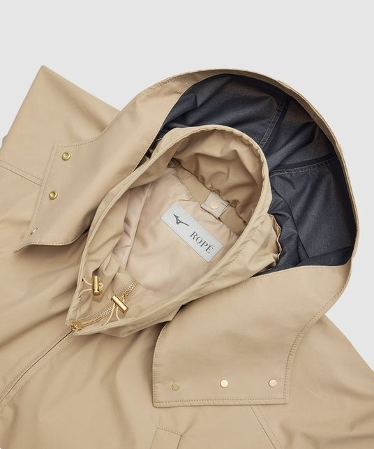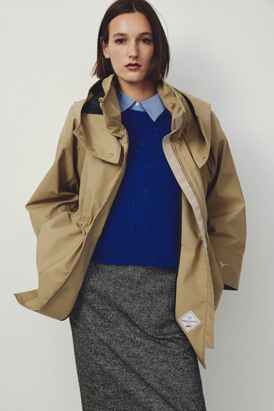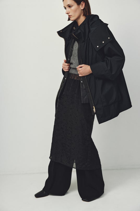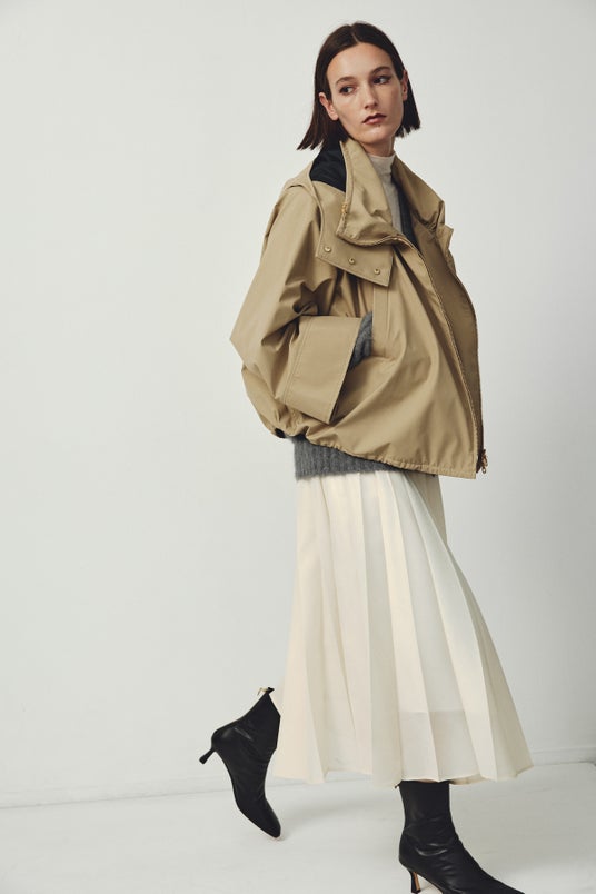 ヨットの帆をイメージしたシルエットが女性らしいフォルムを表現。ライナー付で温度調整ができるのでシーズンレスなアイテムです。ライナー・フードは取り外し可能でライナー単品でも使用できます。