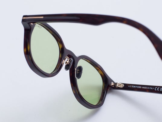 本昨は、1849年に創業したイタリアの老舗メガネ生地メーカーであるマツケリ社製アセテートを使用した質感の高い素材に、ミドルウェイトに仕上げられた細身のデザインがデイリーに使いやすいジャパンモデルの『FT1149-D』を採用。フレームをクラシカルで上品な雰囲気を持つブラウンのべっ甲で、レンズには日常使いのしやすさを考慮し、自然な風景の色味を損なわず、長時間装着しても目が疲れにくいカラーレンズを採用しました。