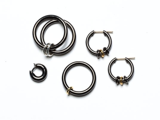 スピネリキルコリンは、2010年にデザイナーのYves Spinelli / イヴ・スピネリとDwyer Kilcollin / ドワイヤー・キルコリンが設立したロサンゼルスを拠点とするファインジュエリーブランドです。ミニマルな幾何学的フォルムをベースに、質感やバランスを大胆にミックスしたギャラクシーリングを発表し世界中で人気を博しています。重ね着けができたり複数の指に連結して着用できるように構成されたその革新的なデザインは、ボリューム感がありながらもモダンでクリーンな軽やかさを表現しています。ロサンゼルスの熟練した職人の手で1点ずつすべてハンドメイドで仕上げることで、ニュアンスのある独自の風合いが感じられるデザインになっています。