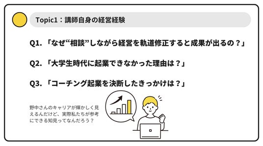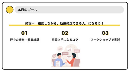 NonaCanvas代表・エグゼクティブコーチ 野中 祥平が自身の経営経験をもとに「相談しながら軌道修正し続けるコツ」を具体的にレクチャー